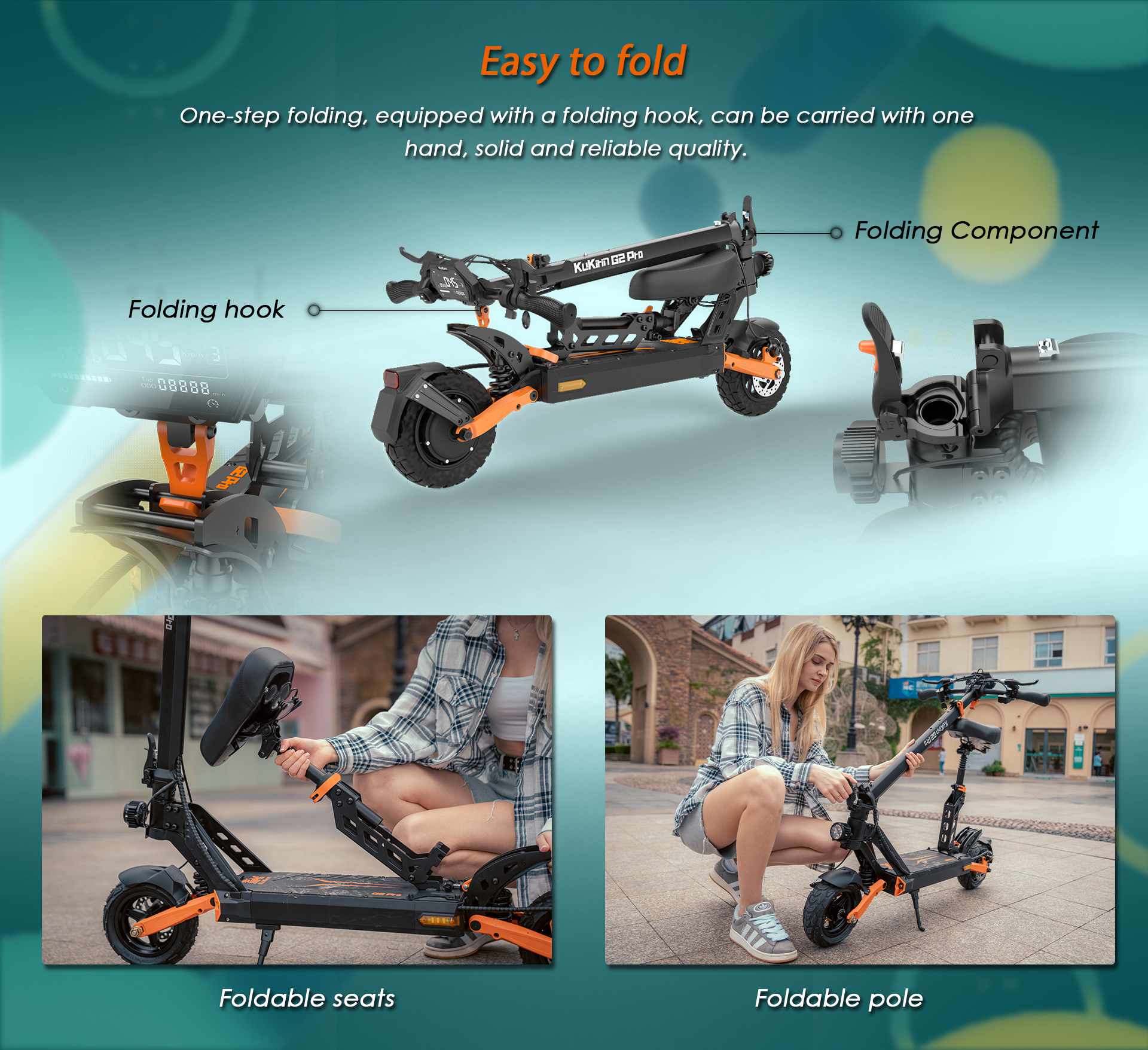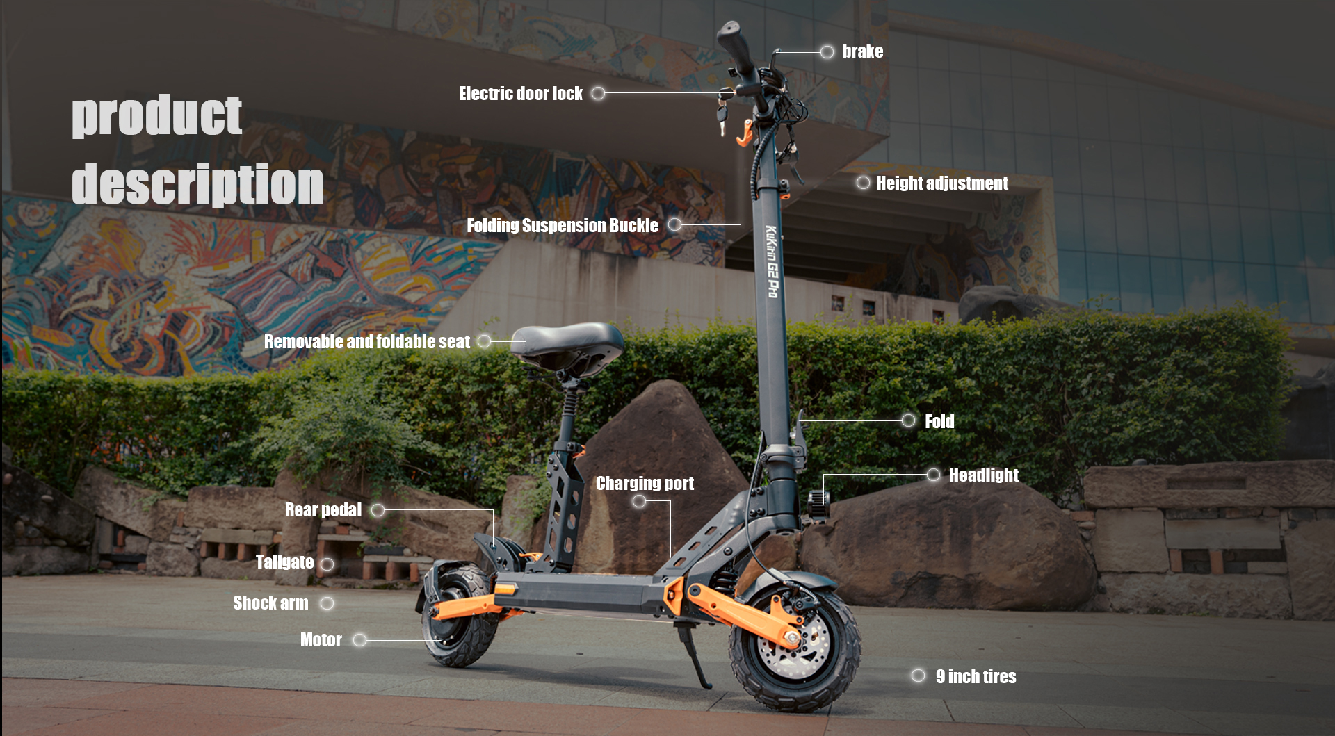 The Kukirin G2 Pro Electric Scooter is a high-performance vehicle featuring a 600W brushless motor (45 km/h top speed, 20° climbing ability) and a 15Ah 48V battery offering a 55km range (7-8h charging time). It prioritizes safety with dual disc brakes and six bright lights, while an intelligent display enables easy control. Additionally, its four shock absorbers ensure a comfortable ride on rough terrain.